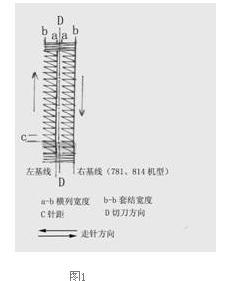 针杆在摆针及针位控制机构作用下,确定机针刺入针板孔的不同位置。在送料机构的配合下完成钮孔缝制。无论左、右横列和前后套结,它们都是以针板切刀槽为中心左右合理分布的(压脚也是如此),定位时先确定摆针横列宽度后再分别进行左基线、右基线、套结宽度。其要求是:以针板切刀槽为中心,左横列右针落针点略偏左,右横列左针落针点略偏右(图1a-a),套结宽度(图1b-b)控制在左横列左针和右横列右针位置以内,相关部位的调整和定位,可参照使用说明书进行。此外,机针下降和摆针落点位都不得与针板孔相碰擦,不得与压脚相碰擦,都应留有不小于0.5mm的安全距离。