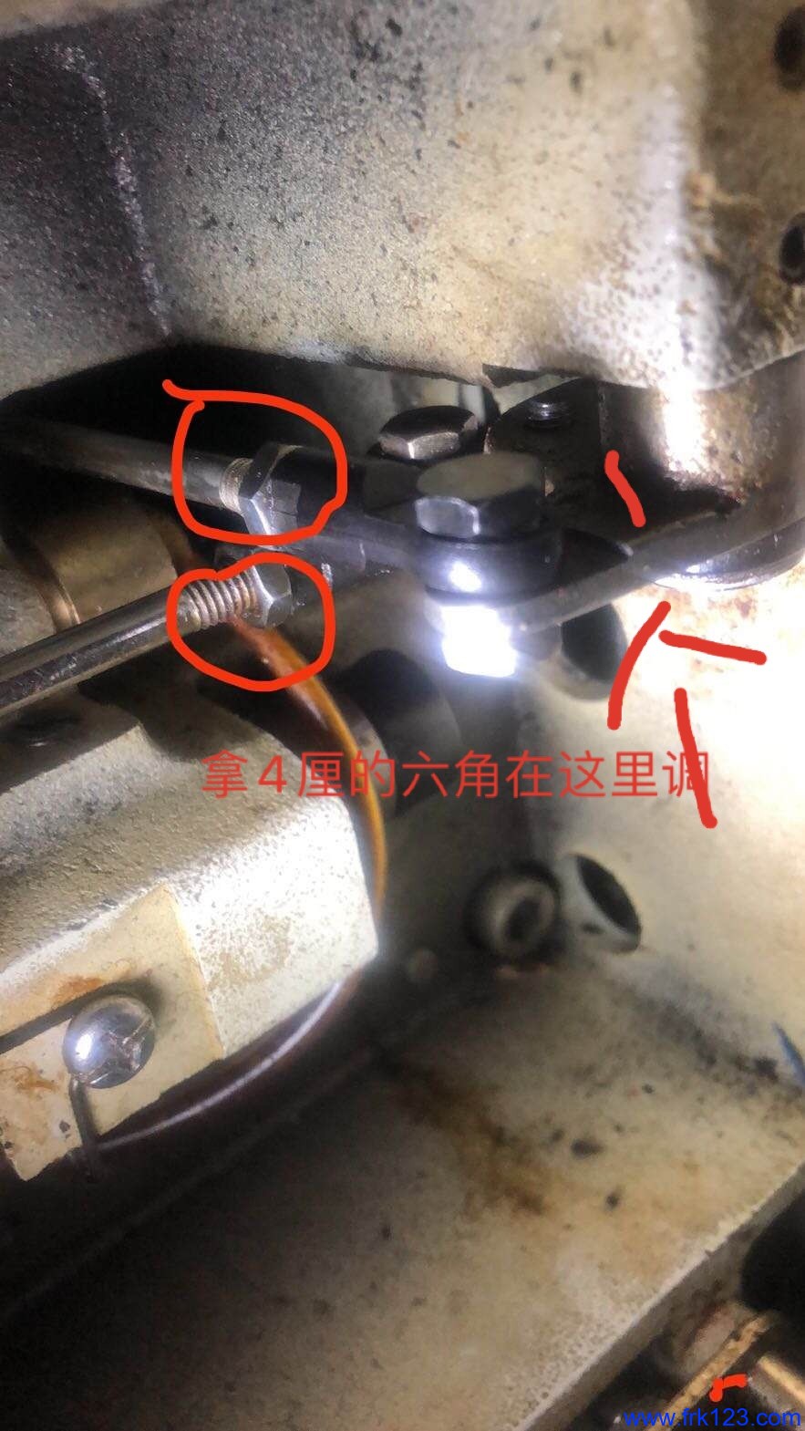 兄弟430D套结机,动刀移进去一点怎么调?